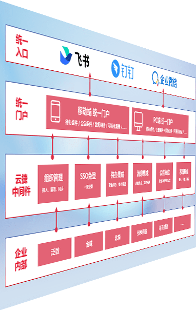 对协作平台提供支持服务,,,支持企业应用与协作平台对接,,,包含组织同步、、消息集成、、、待办集成等。。。支持目前主流的协作平台:钉钉、、企微和飞书。。。。